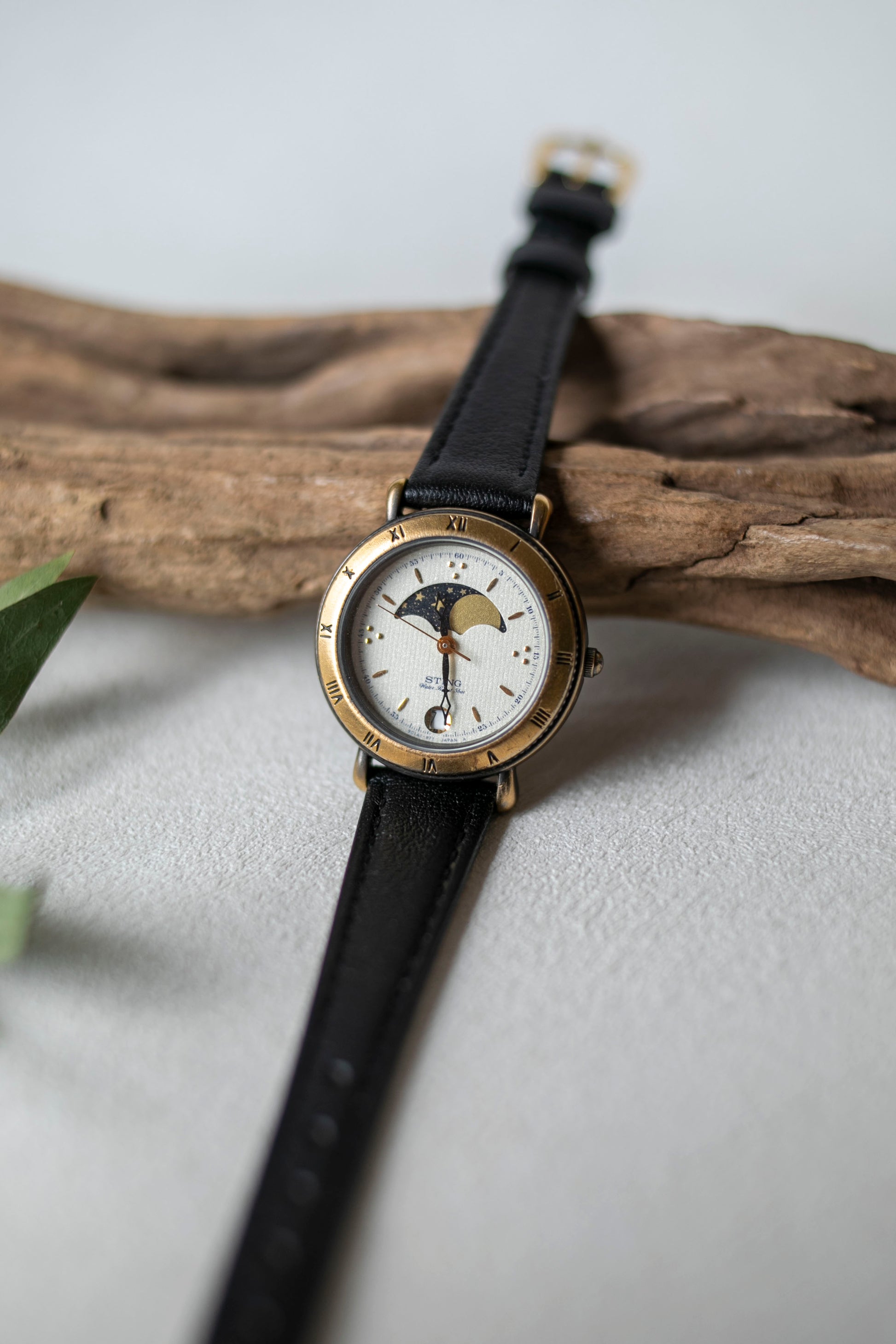 - Textured, glittering pale gold dial