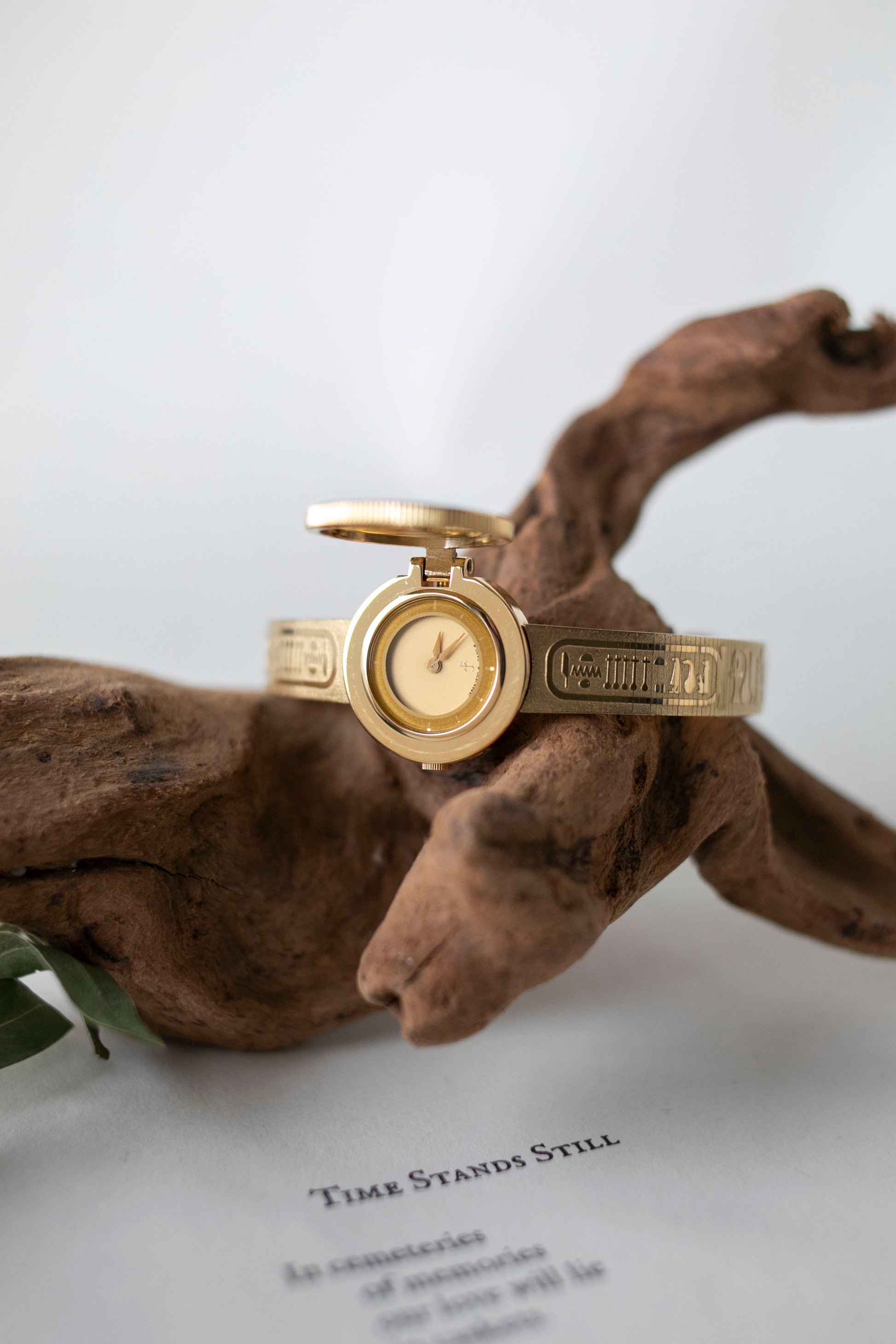 - Watch case flips open to reveal the dial