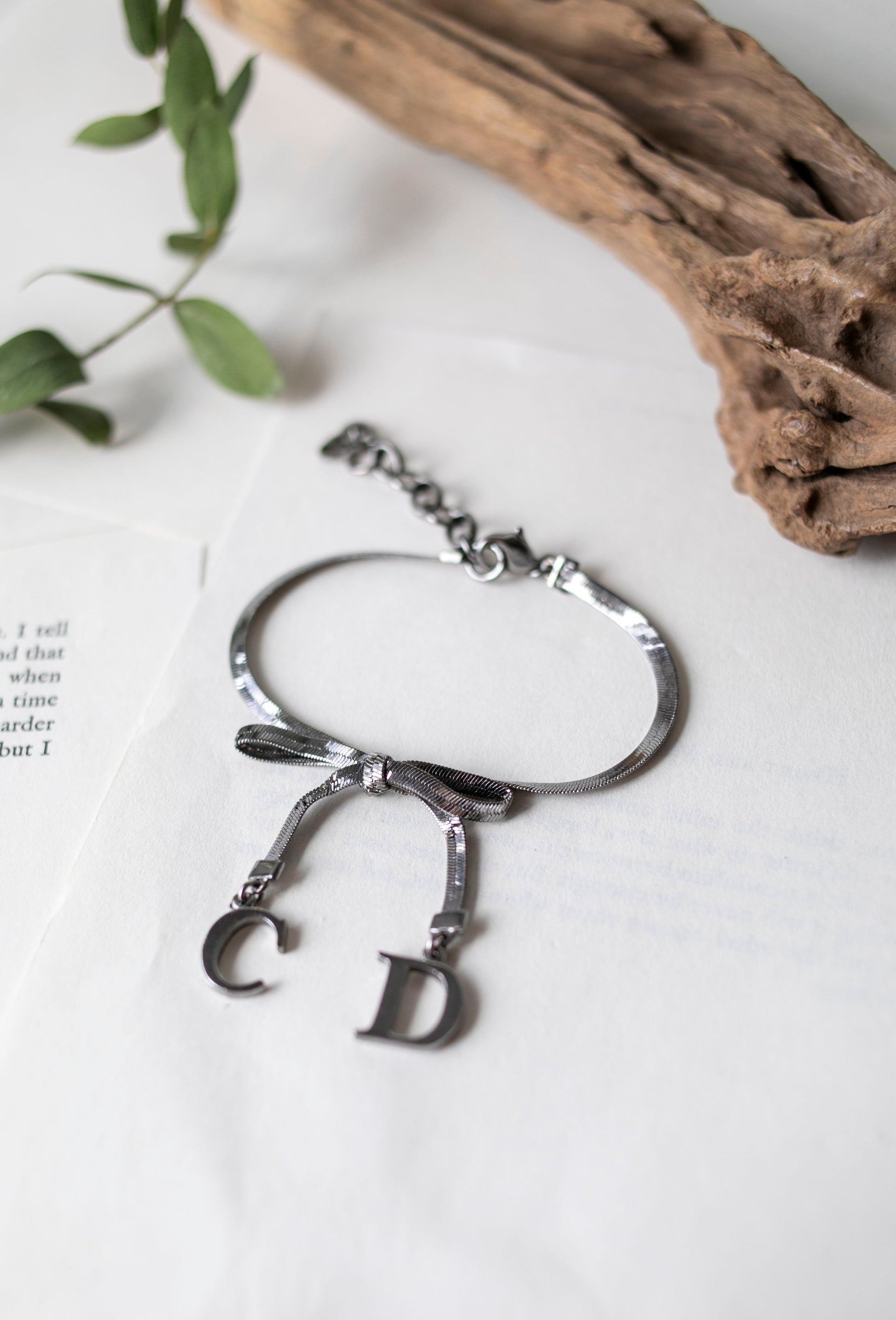 - CD logo charms with bow motif